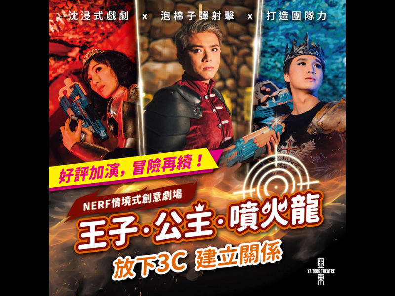 感謝您一路以來的陪伴與支持,讓亞東劇團能在舞台上持續傳遞盼望與感動。2025年《王子・公主・噴火龍》Nerf情境式創意劇場加演計畫,特別安排10場公益專場,盼望帶領更多特殊家庭與社群,一同走進這場屬於勇者的奇幻旅程。